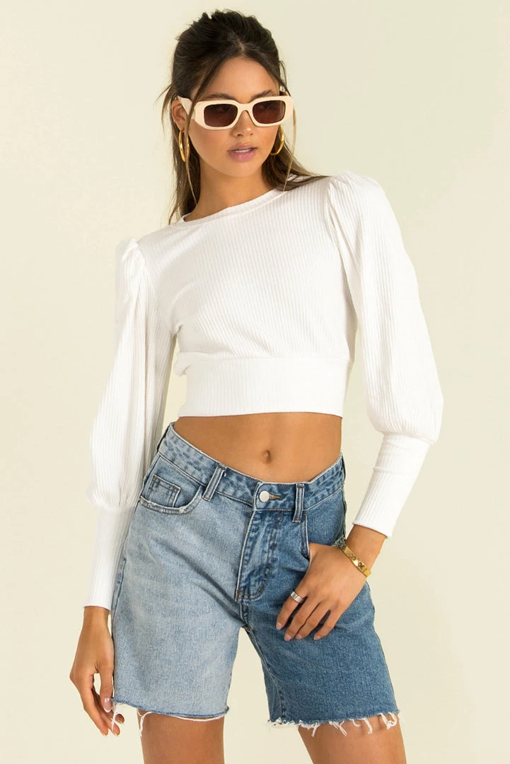 The perfect wardrobe basic! Our Albie Top is made from a ribbed fabric in white. Â She’s a cropped style with a crew neckline and long sleeves. Finish your look with high-waisted denim and mules for a gorgeous everyday look!