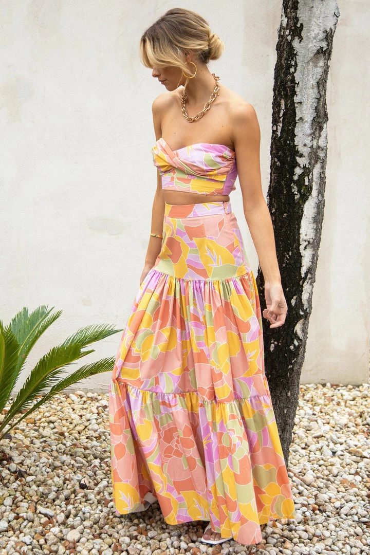 Our beautiful Ayla Top is a strapless style with a twist detail at the bust, fitted bodice and a shirred elastic back for the perfect fit. She’s made from a high-quality fabric in a cotton and is lined throughout. Style her with our matching Ayla Skirt an strappy heels for a stunning party look.