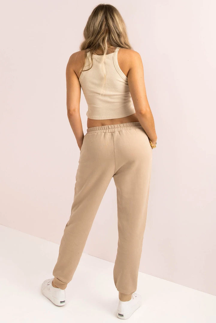 These cute sweatpants are a total must-have! Made from a beige fabric they have an elasticated wait, ribbed cuffs and two side pockets. Style with a tank top and white sneakers for a cute activewear vibe!