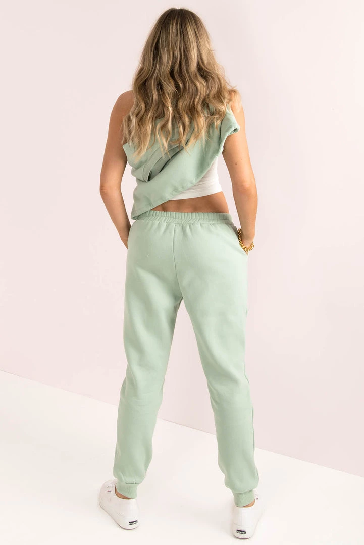 These cute sweatpants are a total must-have! Made from a sage green fabric they have an elasticated wait, ribbed cuffs and two side pockets. Style with a tank top and white sneakers for a cute activewear vibe!