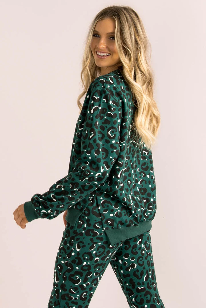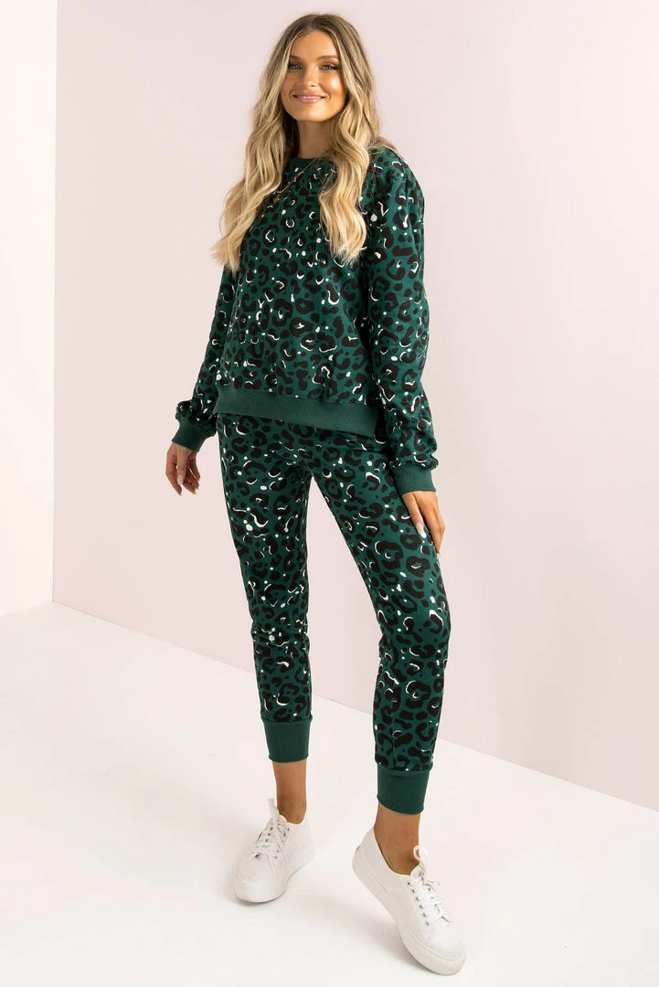 Chilled vibes in our cute Aston Joggers! These luxe high-waisted sweatpants are made from a leopard print fabric in teal and feature two side pockets and a drawstring waist. Pair with a basic tank top or our matching Aston Top for a cute activewear look!Â