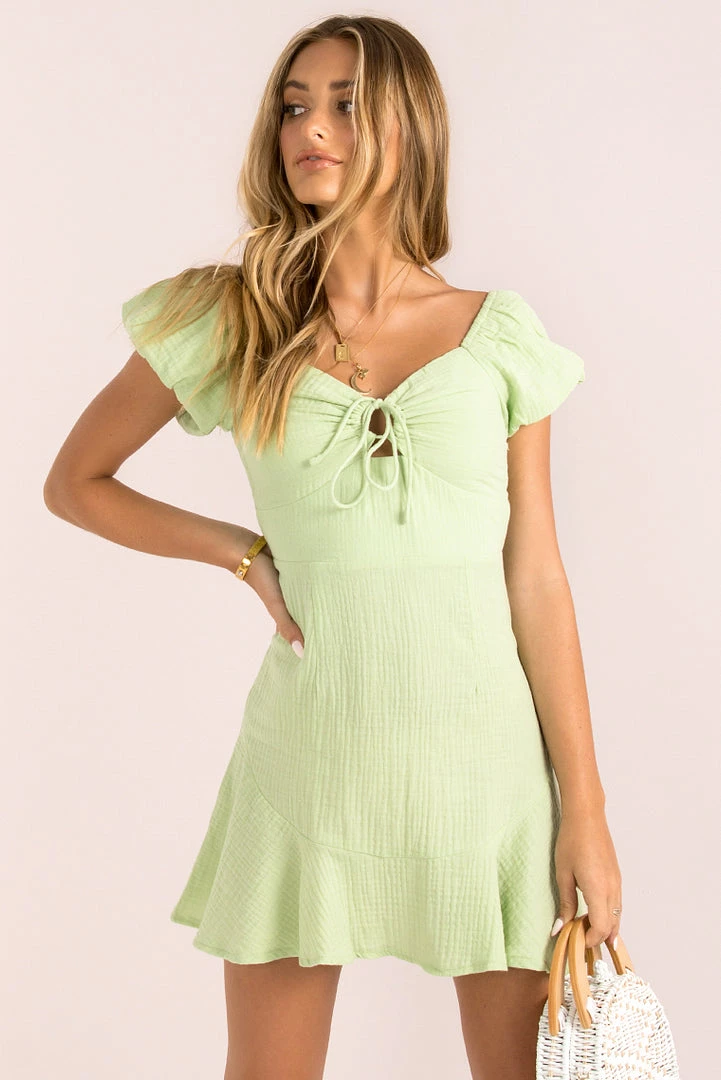 We’re obsessed with this adorable mini! Our Bronti Dress is made from a light-weight textured fabric in the best Lime hue! She features puff sleeves, a cupped bust with tie-up detail and a flippy hem. We love her styled with a white sneakers for a cute weekend look. Also available in yellow and lilac.