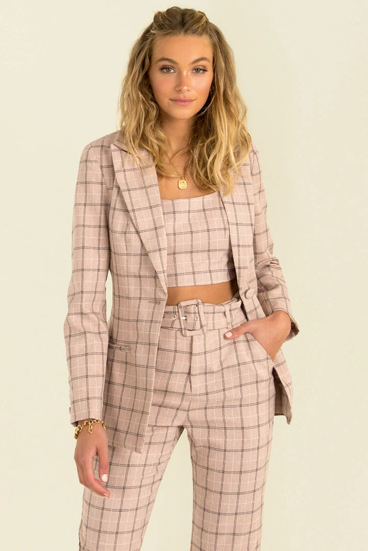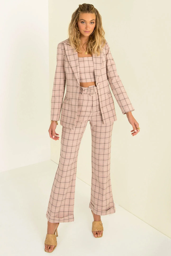 These gorgeous pants were designed to flatter! Made from a pink check printed fabric, our Claudia Pants are a high-waisted style with a matching belt and a slightly flared leg. Style her with our matching Claudia Jacket and Top for a chic and co-ordinated look!