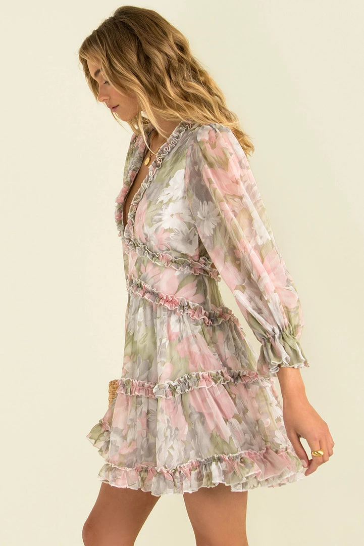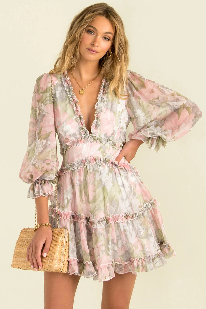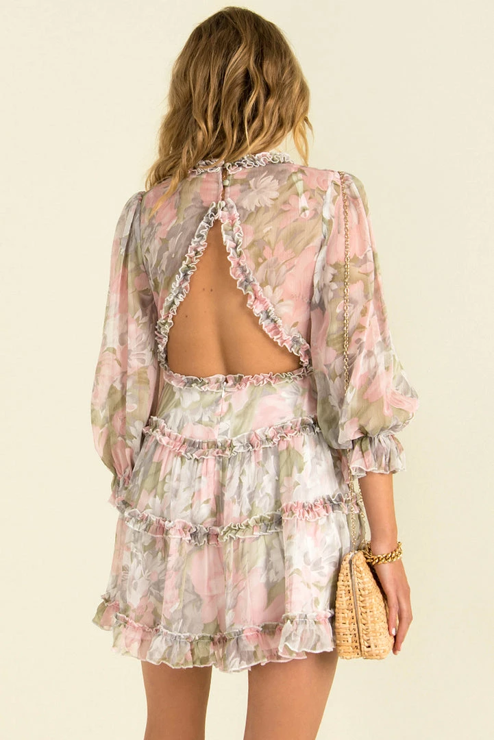 Feel like absolute goddess in our beautiful Felicity Dress! She’s a gorgeous mini dress made from a floaty fabric adorned with a light pink and green floral print. She features long sleeves and a stunning cutout detail in the back. We love her styled with neutral heels and gold accessories! The perfect look for your next special occasion or weekend out with the girls!Â