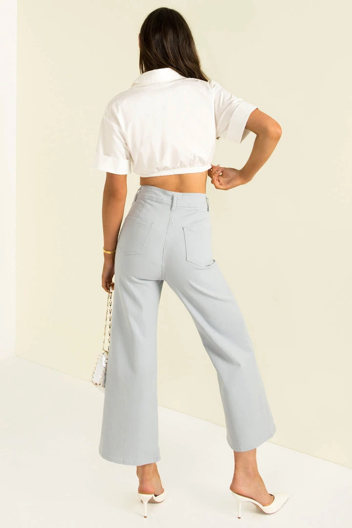 Our Harrison Jeans are a classic wide leg pant made form a stretch denim in a light blue. They’re a high-waisted style with a slightly cropped leg for a flattering fit. We love them styled with a fitted tank and chunky sandals.