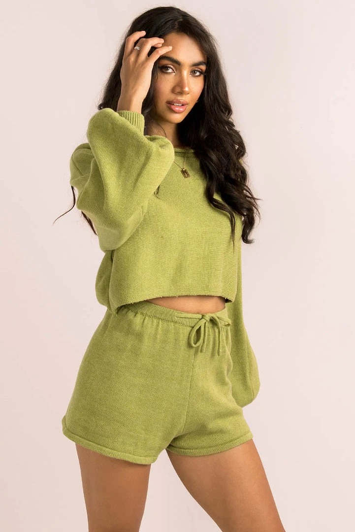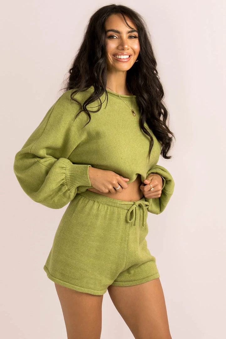 Cute and comfy in our gorgeous Lulu Shorts! These Olive coloured knit shorts are an easy fit, that sit high-waisted with an elastic waist and adjustable tie. We love them styled with out matching Lulu Top and cute sneakers for the perfect off-duty look!