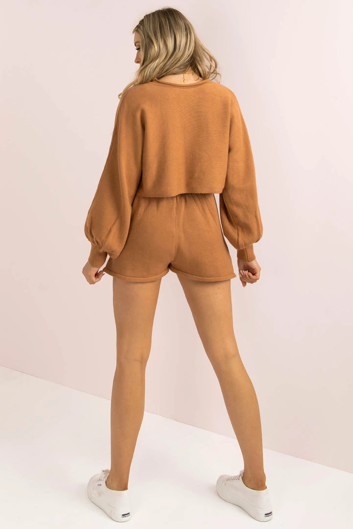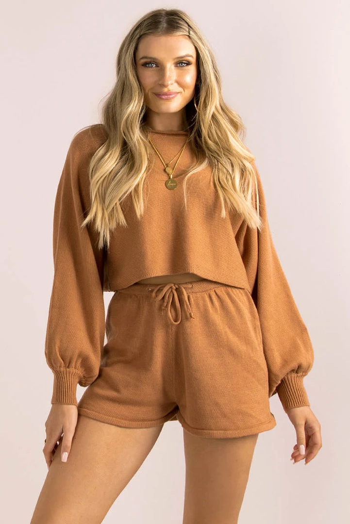 Cute and comfy in our gorgeous Mimi Shorts! These knitted shorts are an easy fit, that sit high-waisted with an elastic waist and adjustable tie. We love them styled with out matching Mimi Top, a woven back and cute slides for the perfect off-duty look!