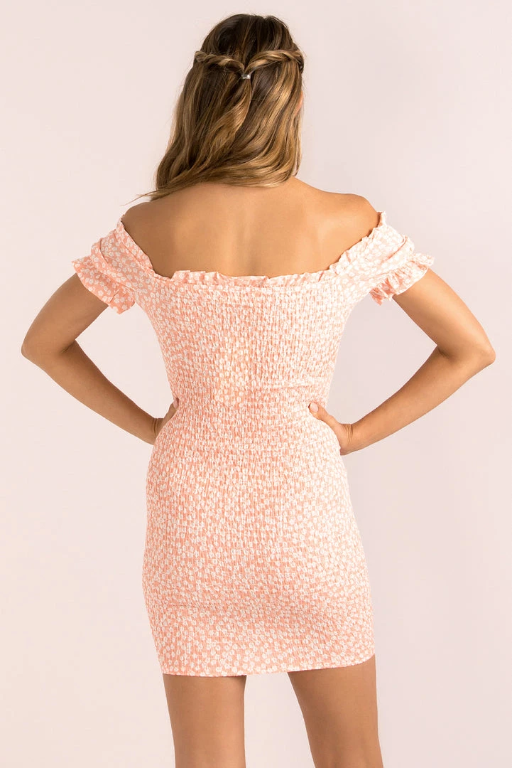 Melt hearts in our dreamy Bambi Dress! She’s made from a light pink fabric with a gorgeous white print. She features a structured bust with boning, that’s finished off with a drawstring tie at the front. She also has a fully elasticated back for comfy and perfect fit! We love her styled with mules and a woven bag – perfect for nights drinking red wine with your girls!