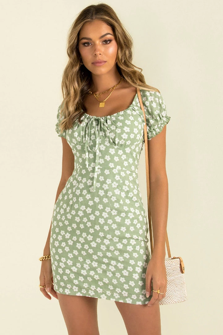European Summer vibes in our gorgeous Laura Dress! She’s made from a green based fabric with a gorgeous floral print. She features a gathered bust that’s finished off with a drawstring tie at the front. She also has the best fit that will make you feel like a total babe! We love her styled with mules and a woven bag – the perfect outfit to take you from day to night!