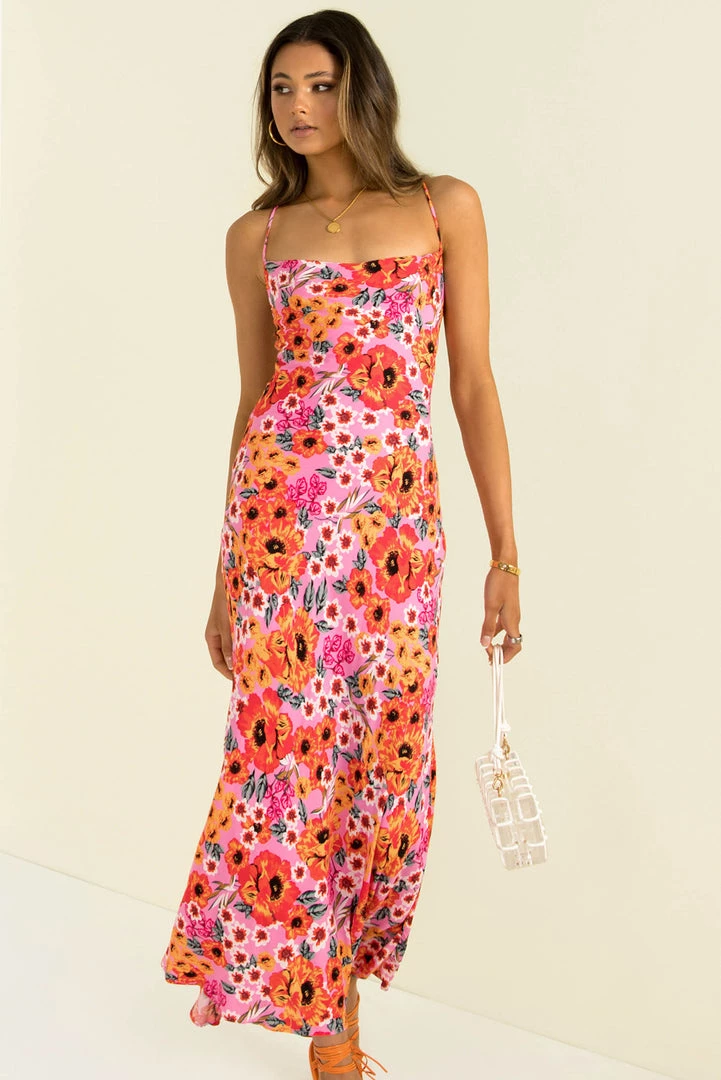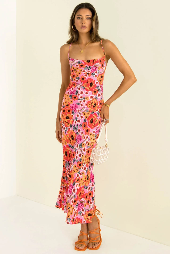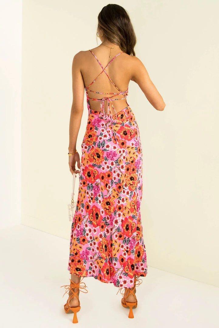 Feel like an absolute goddess in our beautiful Leyah Dress! This gorgeous midi dress is made from an high-quality fabric in a pink floral print. She features a fitted bodice and a skirt that skims the body and turns into a flared hem. She also has an open back with a stunning lace-up detail. Style her with strappy heels and gold hoops for your next night event!