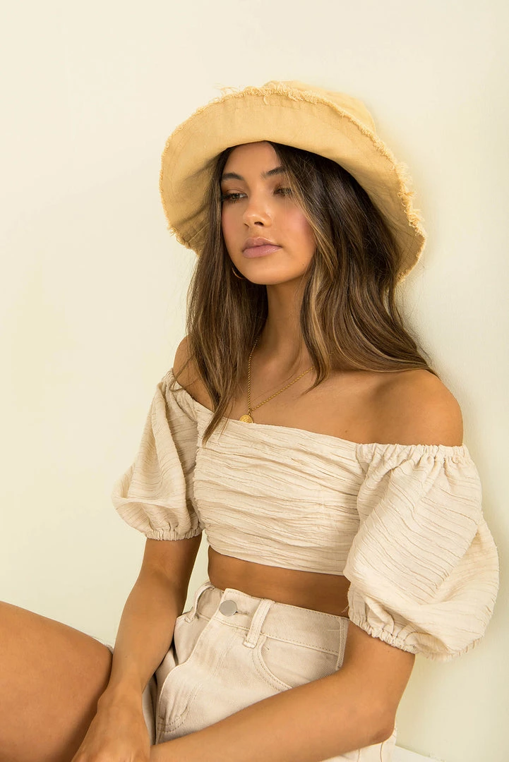 Ready for the sunshine in our gorgeous Noah Hat! Made from 100% cotton canvas fabric in a soft yellow, she’s a cute bucket hat with a full brim and frayed detailing.