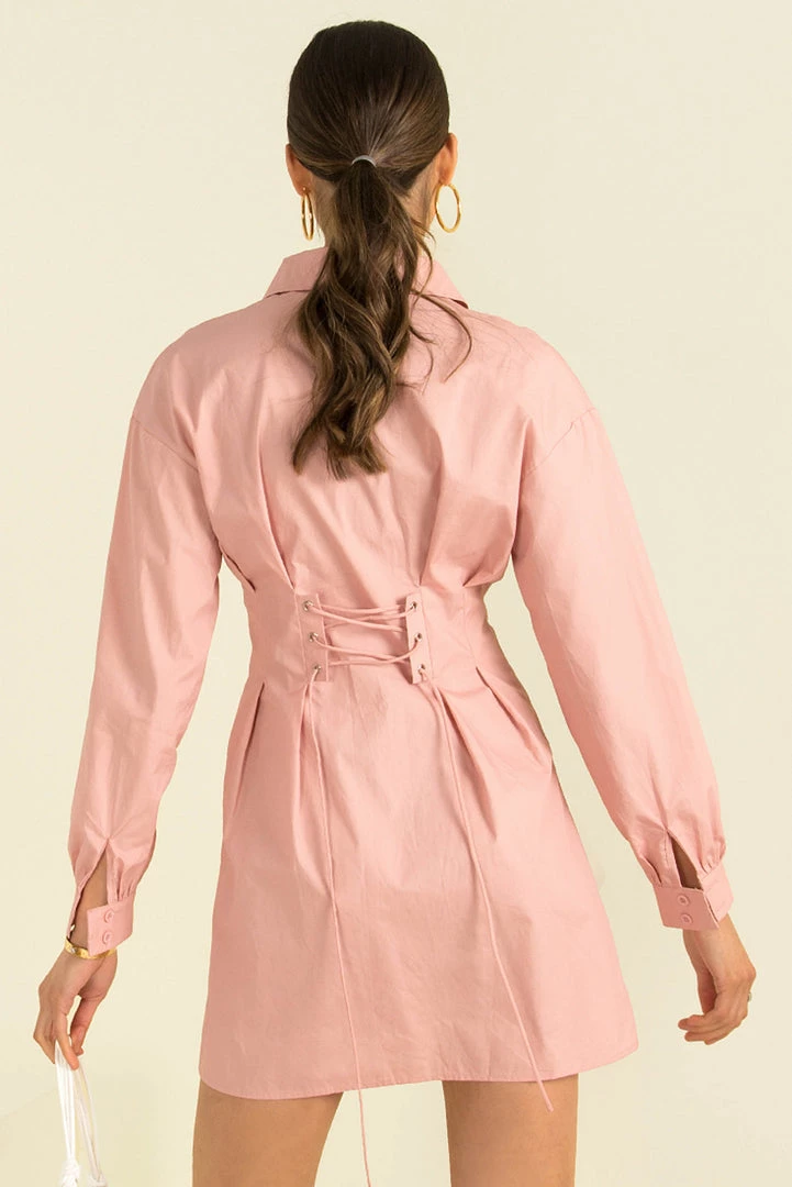 Our Raya Dress will be a chic addition to your wardrobe! This pink, shirt dress features a collared neckline, long sleeves and a button down front. She also has darts at the waist to add shape and a lace-up detail in the back. Style her with chunky sandals for the day or dress her up with neutral heels and a mini bag!