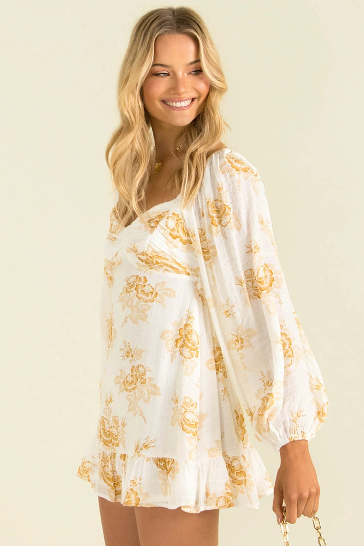 The perfect dress for day or night! Our lovely Renata Dress is made from a high-quality fabric in a soft, floral print. She has gathered detailing at the bust, long sleeves and a frill hemline. She also has a beautiful open back with a tie-up detail. Style her with mules and a crossbody bag for an adorable weekend look!