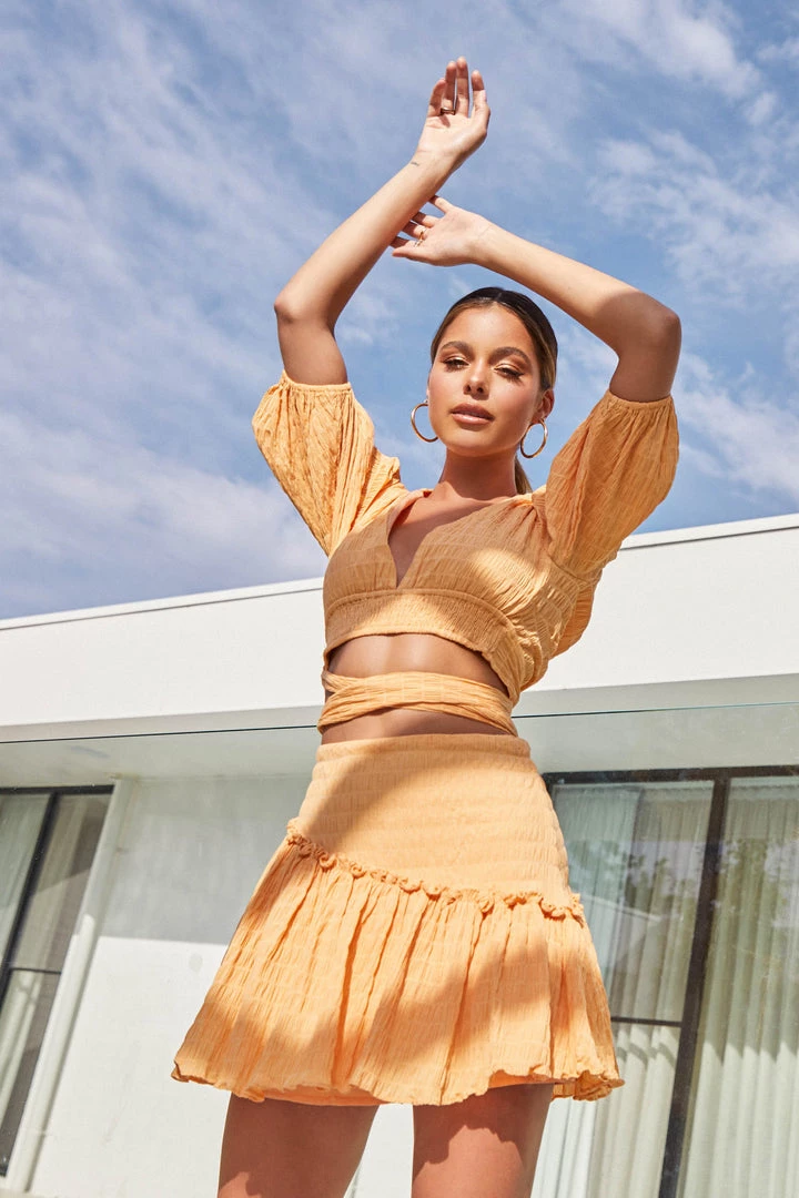 The perfect match! Our gorgeous Rico Set is the perfect look for a weekend in the sun. She’s a gorgeous two-piece set which features a puff sleeve crop top and co-ordinating mini skirt. Finish your look with sunnies, mules and a mini bag for a look that can take you from day to night.