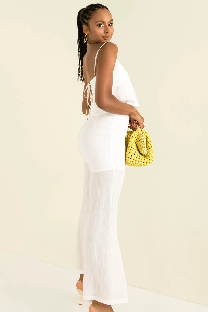 Step out in style. Our gorgeous Samia Pants are a high-waisted style, made from a soft, textured fabric in white. They have a flared silhouette and are lined to the mid-thigh. Style them with our matching Samia Top and colourful accessories for a stunning weekend look.