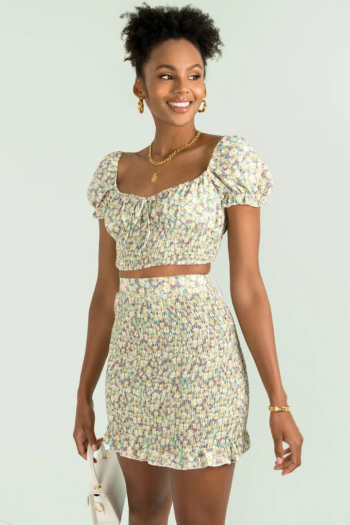 Feel like a total babe in our gorgeous Selena Skirt! She’s a high-waisted style, which features gorgeous shirred and ruffle detailing throughout. She’s made of a stunning fabric in sage green with a lovely floral print. We love it styled with the matching Selena Top or keep it causal and style her with a white tee.
