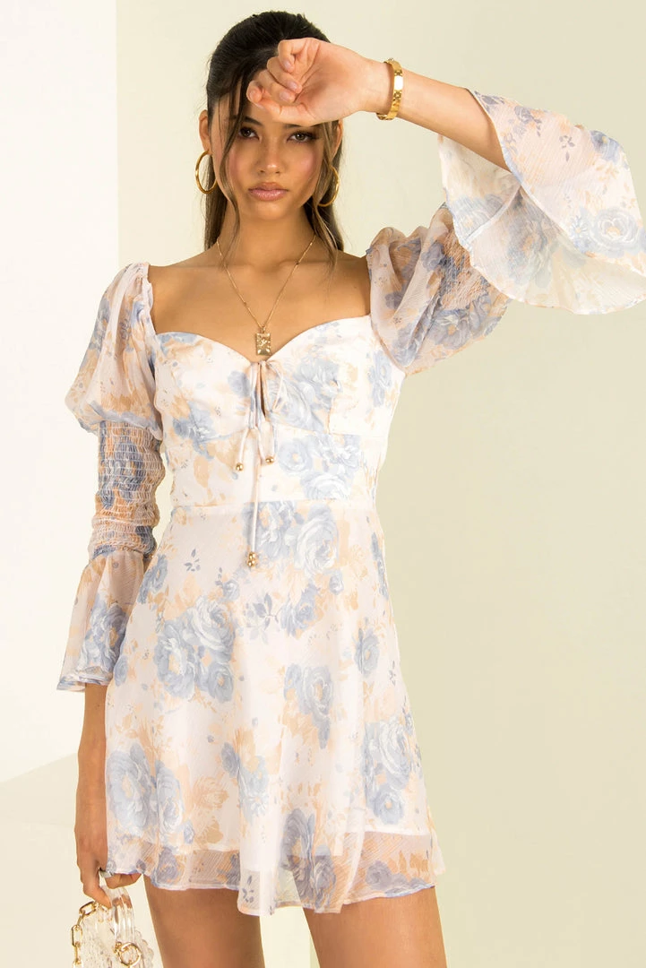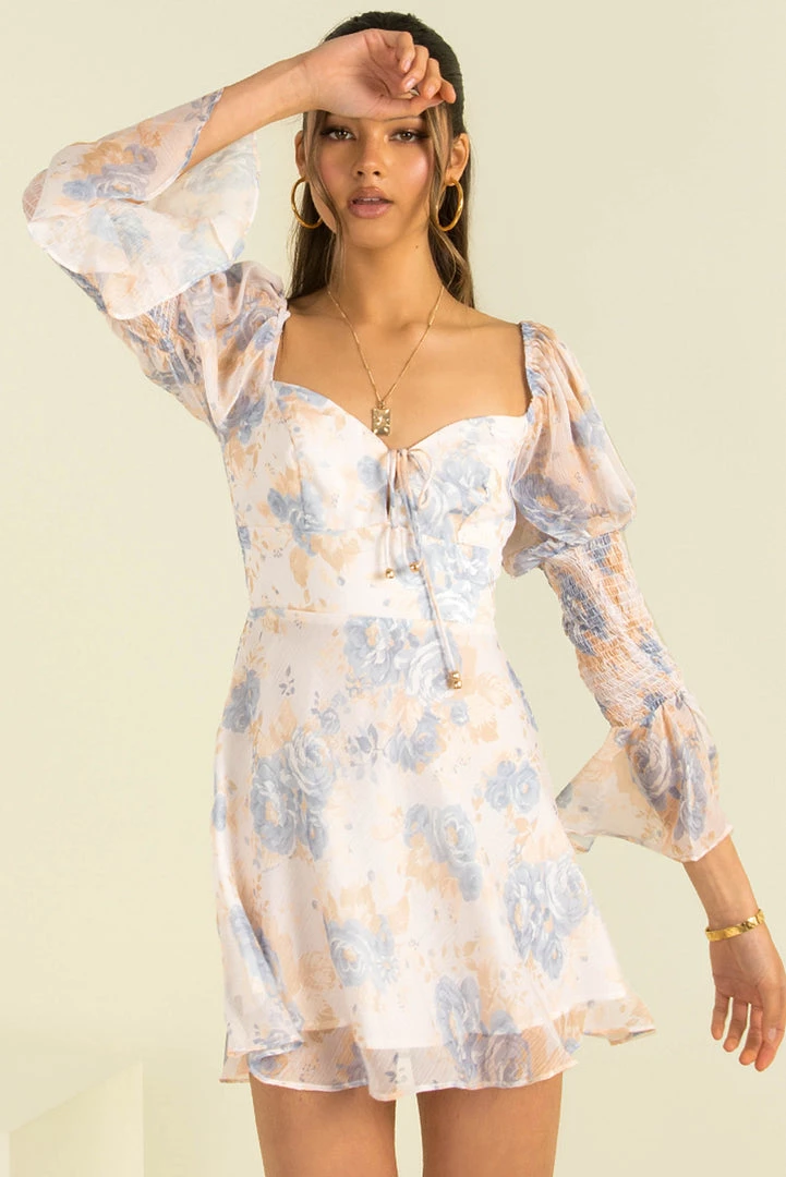 Feel like a goddess in our stunning Sevina Dress! This beautiful mini dress is made from a high-quality fabric in white with a dreamy floral print throughout. She features a tie-up detail at the bust with leg sleeves featuring puff shoulder, shirred detailing and flared cuffs. She also has the best fit; skimming the body and finished with a floaty skirt. Style her with strappy heels and a mini bag for your next event!