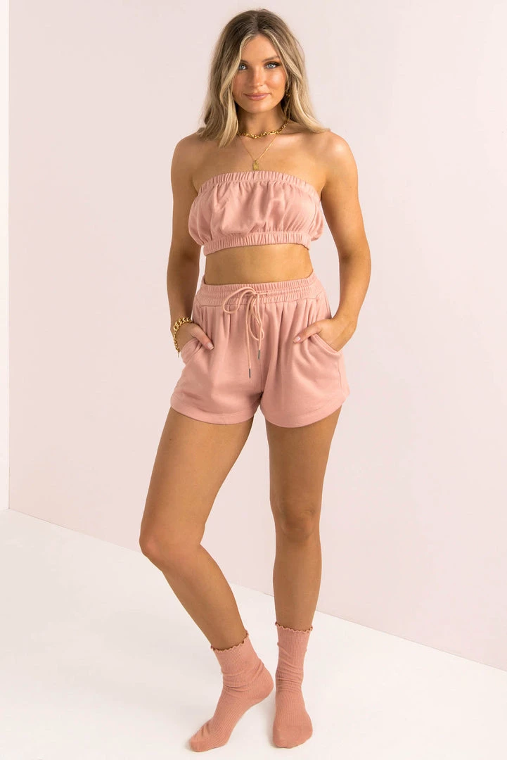 Feel like a babe in our must-have Skipper Shorts! These gorgeous shorts are made from a luxe fabric in the perfect rose hue! They features an elastic, drawstring and the best fit! Finish your look with our matching Skipper Top and Jacket for a cute activewear look!