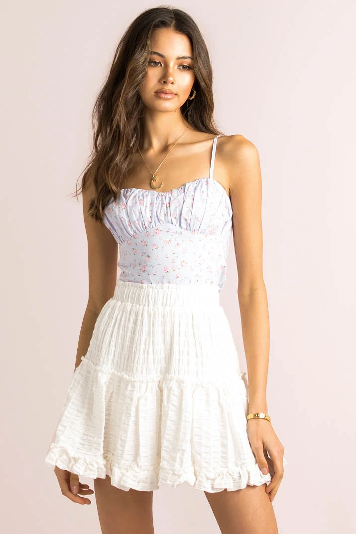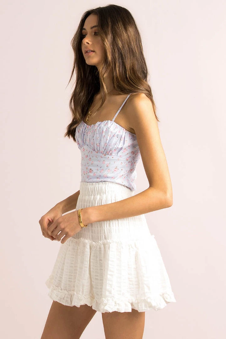 Feel like a total babe in our cute Beth Top! Made from a lovely floral print fabric, this gorgeous little number features gathered detailing in the bust, adjustable straps and a shirred back for the perfect fit! Style her with high waisted denim and sneakers for a cute weekend look!